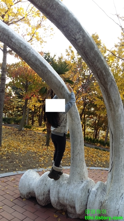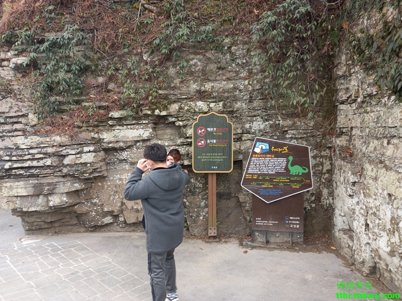위쪽으로 올라가는 계단을 올라 계단 정상에 섭니다. 여기서 더 위쪽으로 올라가면 고성공룡박물관 후문이 나옵니다.