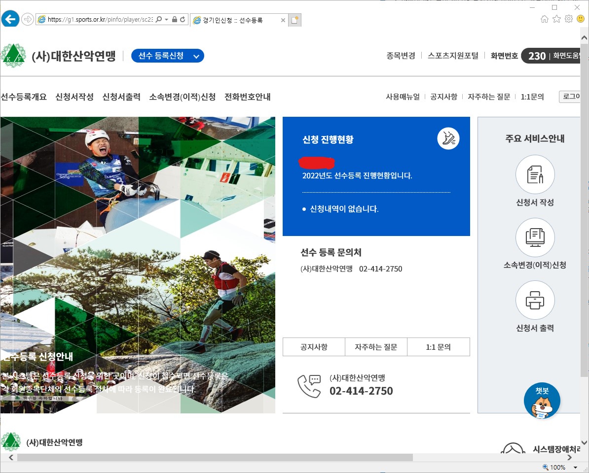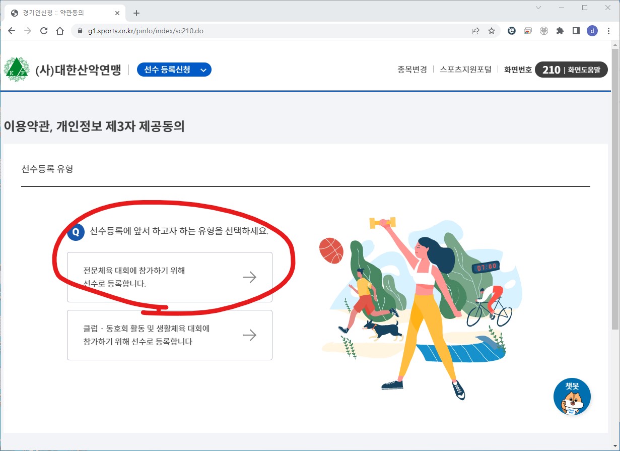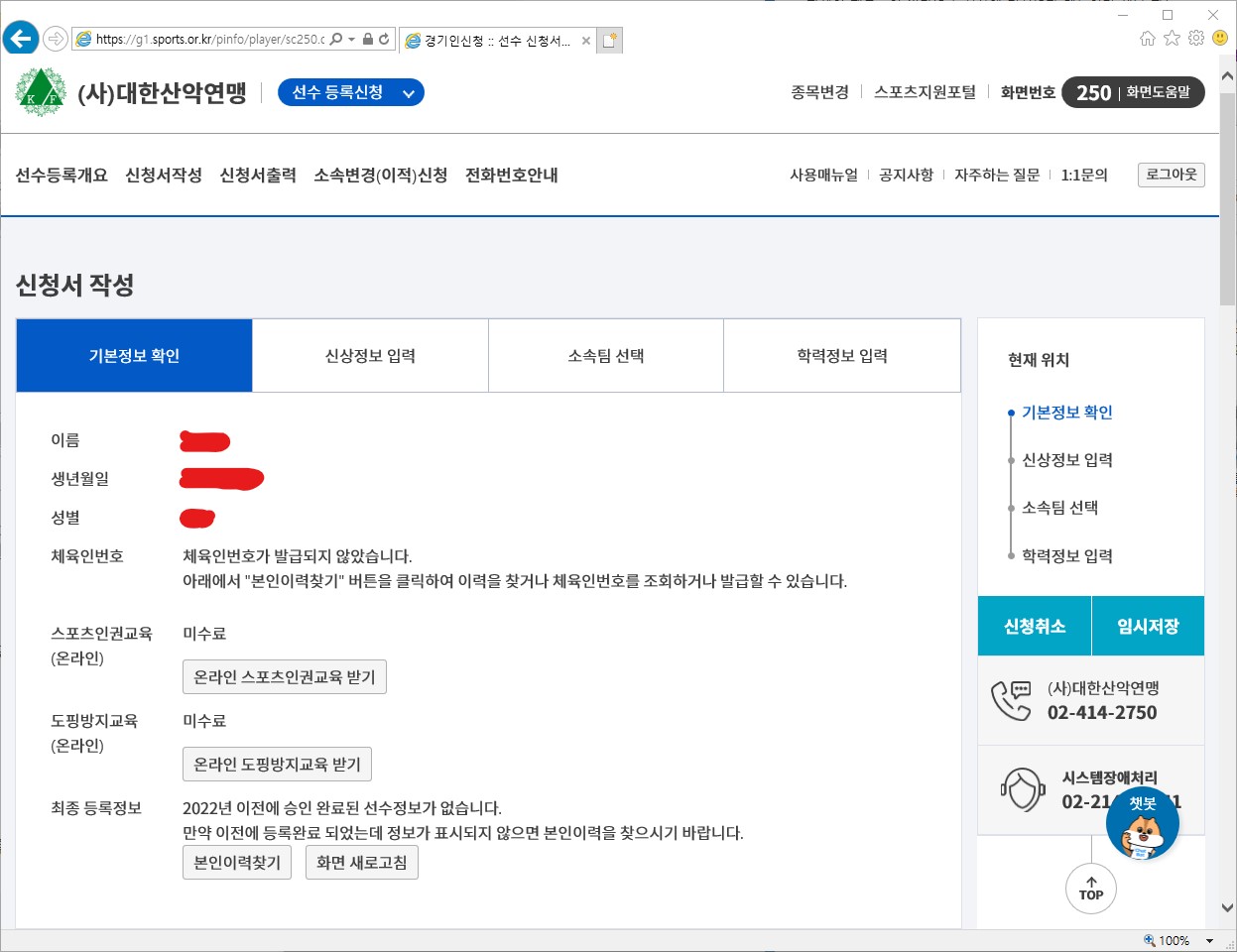 지금부터는 대한산악연맹에 선수등록을 하는 내용입니다.