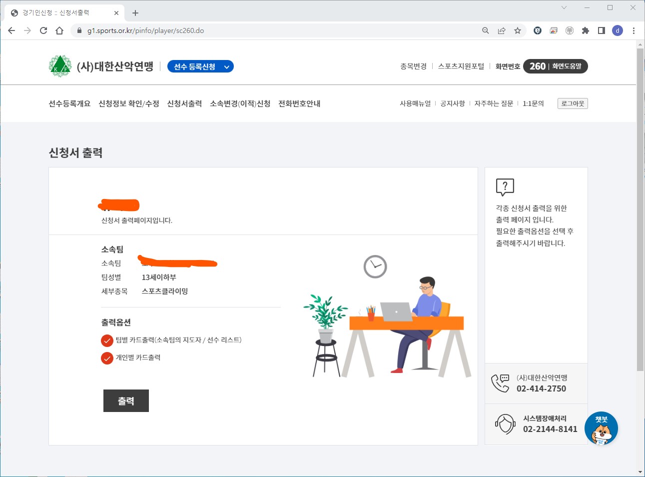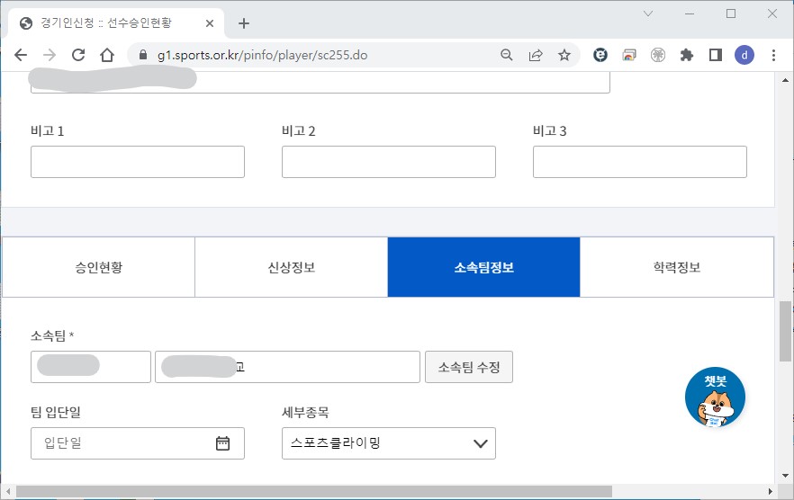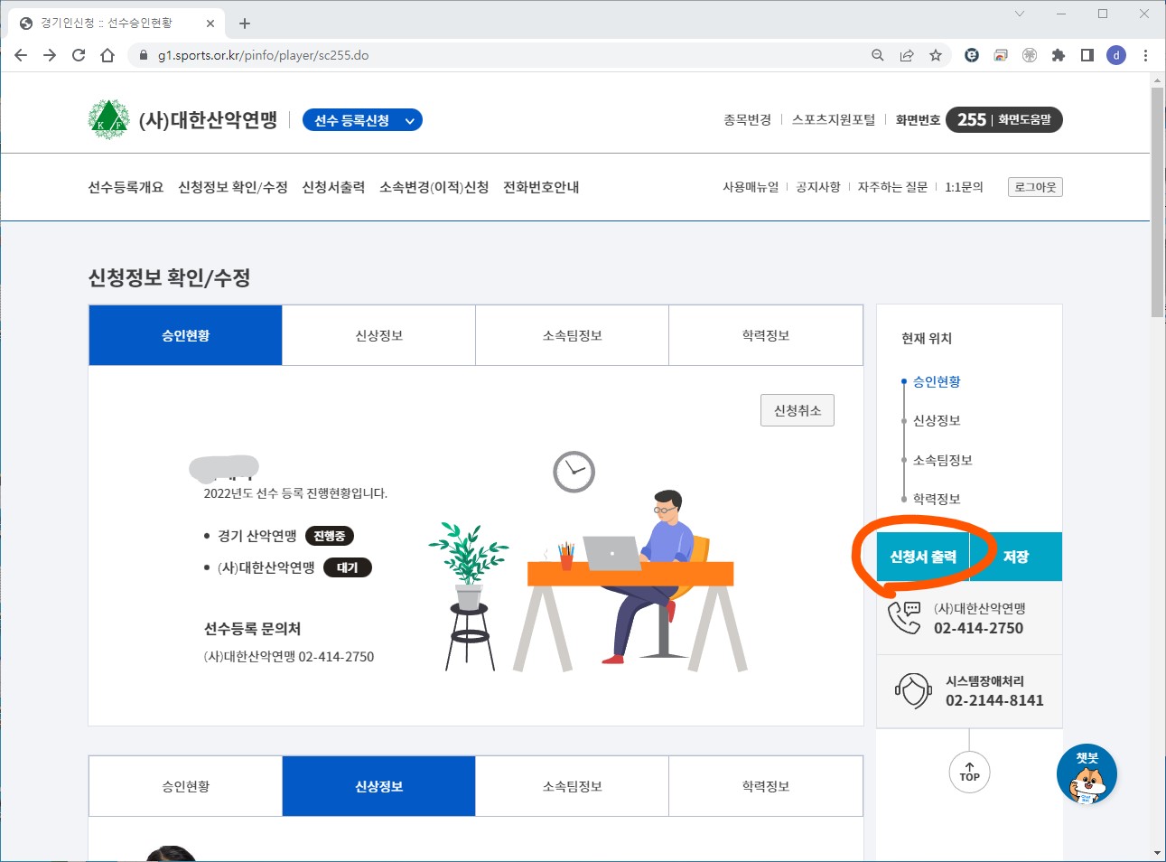 지금부터는 대한산악연맹에 선수등록을 하는 내용입니다.