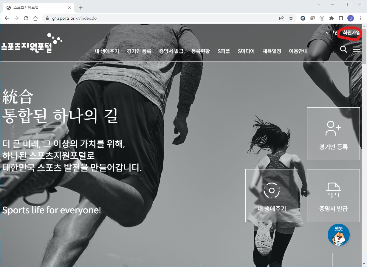 우선 스포츠지원포털 로그인을 해야하므로 회원가입을 하셔야 합니다.
