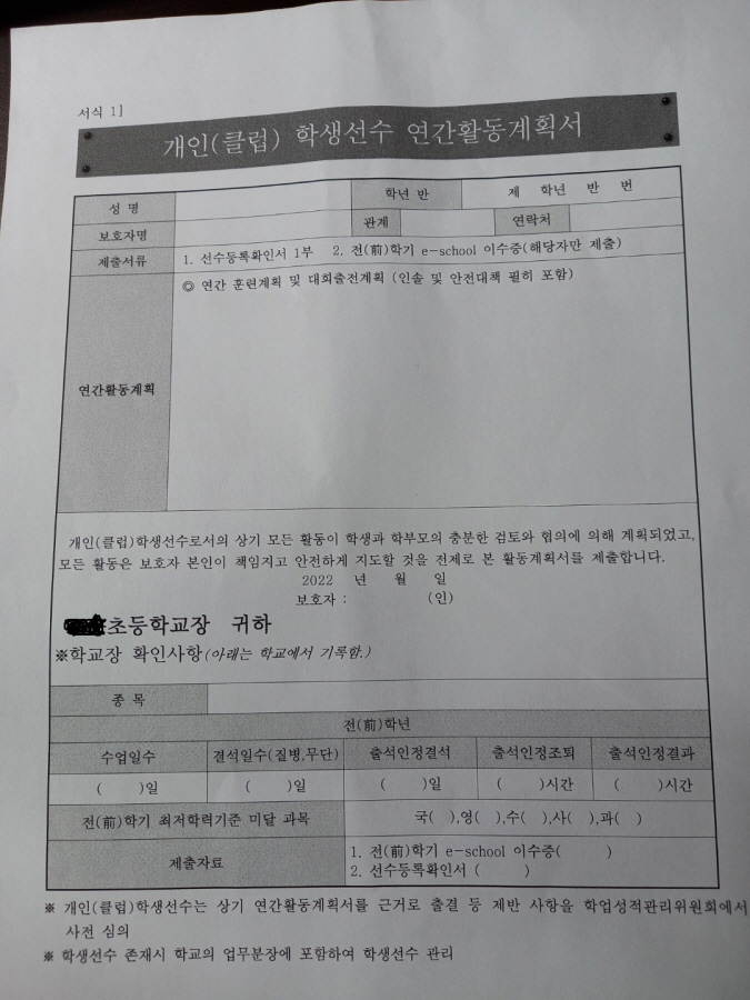 학교측에 선수등록 신청서, 학교장 확인서등을 요청하였고 모든 문서를 완료 하였는데 학교에서도 작성해달라는 문서가 왔습니다.